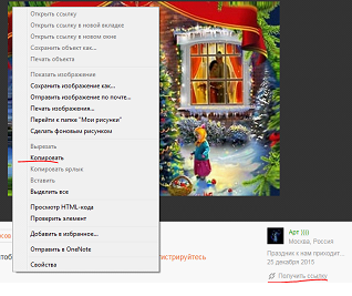 Если же необходимо скопировать картинку, а не ссылку на нее, то предыдущая процедура отличается лишь пунктом меню.