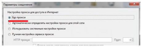 В открывшемся окне выберите пункт Без прокси и проверьте работоспособность программы.