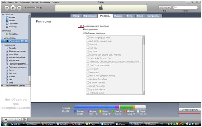 Процедура почти завершена и осталось только подсоединить мобильное устройство и синхронизировать звуки (рис. 11). После этого в телефон будет перемещен созданный рингтон, который и следует установить в качестве мелодии.