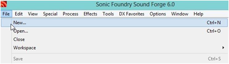 Вырезанный и скопированный участок находится в буфере программы, а тем временем необходимо создать новый пустой трек и вставить в него ранее скопированный отрезок. При этом используется команда «New», находящаяся в меню «File» (рис. 4).