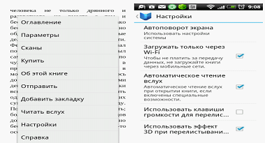От других ридеров данный экземпляр отличается присутствием эффекта перелистывания страниц. С помощью вспомогательных настроек (тень, листание скрэтчем, хард клавишами) процесс выглядит довольно впечатляюще.