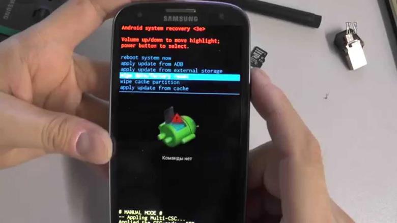 Если модель аппарата новая, то необходимо зарядить телефон, выключить его, вытащить аккумулятор и вставить обратно. Зажимайте сразу три клавиши — повышения уровня звука, «Home» и питание. После этого развернется список, где Вы сможете указать строку о возврате фабричных настроек системы.