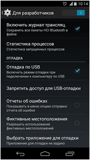 Отмечаем флажком «Отладка по USB.