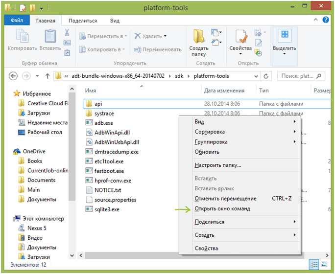 Теперь можете подключить девайс к компьютеру и переходим в каталог «sdk/platform-tools» распакованного архива с приложением.
