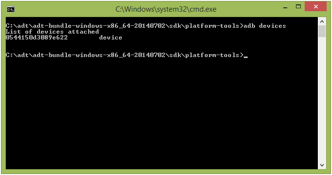 В командной строке вводим «adb devices».