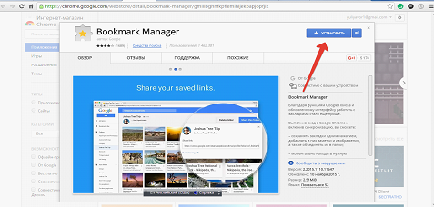 Bookmark Manager (в переводе с английского «менеджер закладок») — программа от Chrome, с помощью которой можно создавать визуальные закладки для браузера и организовывать расположение избранных страниц. Отмеченные ресурсы отображаются в виде изображения что позволяет пользователю быстро находить нужную страницу. Использование менеджера экономит время и придает дополнительный комфорт работе во Всемирной сети.