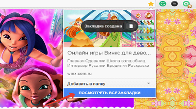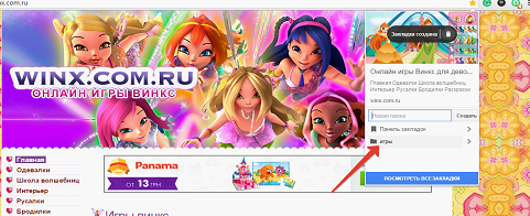 Если Вы хотите сделать закладку в тематической папке, при ее создании нажмите «Добавить в папку» и укажите наименование тематического сборника.