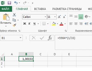 вводится текст формулы 5984^(1/33), что соответствует ;