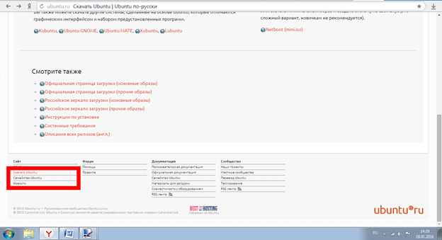 На этой же странице представлены и другие ОС, выполненные на таком шаблоне. Они отличаются набором предустановленного ПО и графическим оформлением. Узнать об особенностях каждой можно по ссылке «Семейство» внизу страницы. Если Вы собираетесь создать загрузочную флешку Ubuntu, находясь в одной из стран СНГ, то скачивать дистрибутив лучше с зеркала из хранилищ «Яндекса». Так загрузка будет идти быстрее.