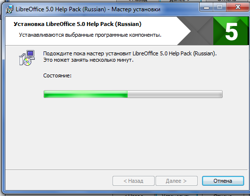 - В результате проделанных действий начинается инсталляция программы. Процесс занимает 1-2 минуты.