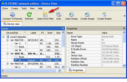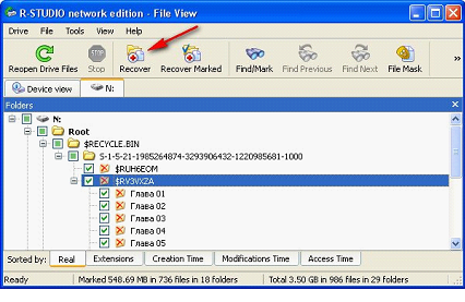 По мнению большинства компьютерщиков, это лучшая программа для восстановления файлов. Сразу стоит отметить, что в отличие от предыдущих приложений R-Studio – платная. Кроме того, отсутствует русский язык, но интерфейс интуитивно понятен, поэтому англоязычное меню не доставит неудобств пользователю. Интересно, что программа для восстановления жёсткого диска R-Studio запускается даже с загрузочной флешки. Это помогает в тех случаях, когда произошло критическое повреждение ОС и компьютер не загружается. Рассмотрим, как происходит восстановление потерянных данных.