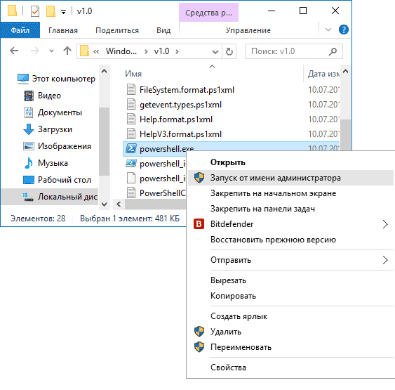 При отсутствии значка «Мой компьютер», в Проводник можно зайти с помощью любого ярлыка на Рабочем столе. Запустить PowerShell можно из папкиWindows\Sistem32\. Программу нужно запускать с правами Администратора.