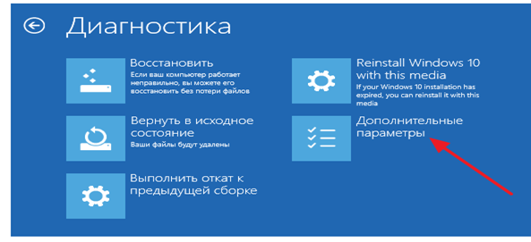 - В блоке диагностики выберите последний раздел, который включает дополнительные параметры.