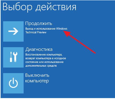 - После закрытия черного прямоугольника в блоке «Выбор действия» отмечаем «Продолжить».
