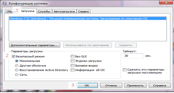 Дальше следует раздел конфигурации. Перейдите в блок загрузок и установите метку возле нужного режима. Кликнете «ОК».
