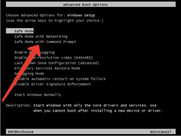 Восстановление ОС также можно выполнить через вызов командной строки в Windows 7. Во время загрузки ПК нажмите кнопку F8 (с первого раза может не получиться, поэтому проделайте еще раз). Дальше выберите команду Safe Mode с поддержкой командной строки.