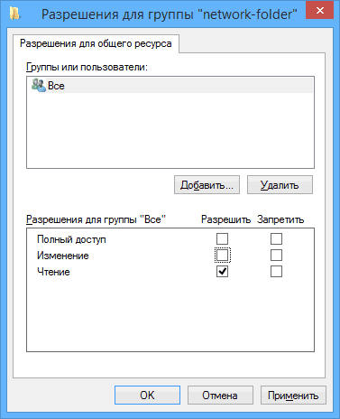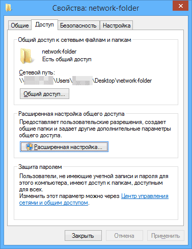 Совет. Иногда общий доступ к каталогу открывается только после перезагрузки компьютера.