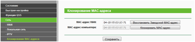 - Во второй строчке жмем по кнопке «Клонировать MAC-адрес».