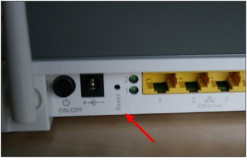 Когда маршрутизатор включен в сеть, исправно работает кабель, нет проблем со стороны провайдера – выполняем аппаратный сброс настроек роутера, нажав при помощи иголки или иного подобного предмета на кнопку «Reset». Она расположена на задней панели корпуса и слегка утоплена в него.