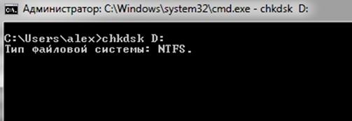 Подобный способ проверить внешний HDD реализуем в семерке и восьмерке. Подключаем накопитель, в поисковой строке меню «Пуск» находим командную строку и запускаем приложение: