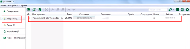 После загрузки торрент файла с трекера следует загрузить его в utorrent через меню приложения «Файл».