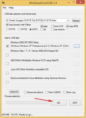 Когда определитесь сколько у вашей системы бит, запускайте нужный файл. Теперь переходите непосредственно к созданию загрузочного носителя, чтобы установить Win XP с флешки.