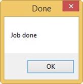 Когда строка состояния полностью заполнится появится окно с сообщение о завершении работы.