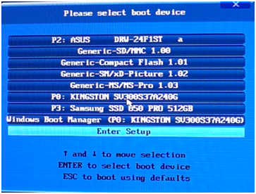 На компьютерах с комплектующими производителя Asus чтобы открыть boot menu предусмотрено нажатие кнопки F8 или ESC при включении оборудования.