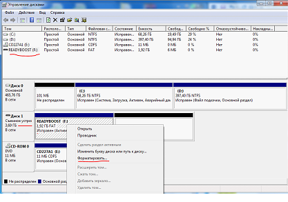 Совет: когда не удается отформатировать флешку, рекомендуется перезагрузить компьютер, нажать F8 во время загрузки и выбрать пункт безопасного режима. Дальнейшие действия с командной строкой и утилитой управления дисками пройдут «более гладко». Причины, по которым не форматируется флешка часто возникают из-за блокирования процессами системных или сторонних программ.