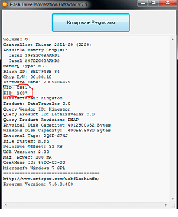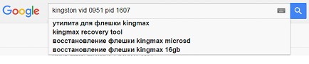Имея идентификаторы контроллера и название накопителя формируется запрос для поисковика: « восстановление kingston vid 0951 pid 1607».